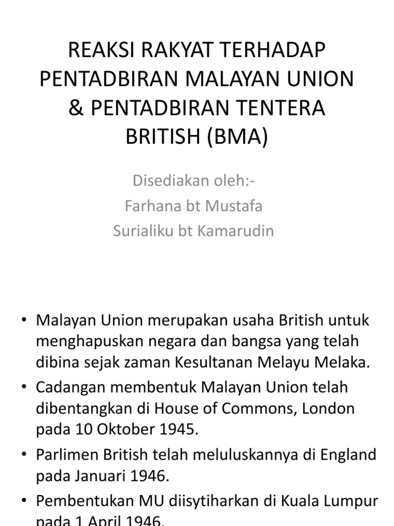 Terangkan Sebab Pihak British Memperkenalkan Malayan Union Pada Tahun 1946 Pdf